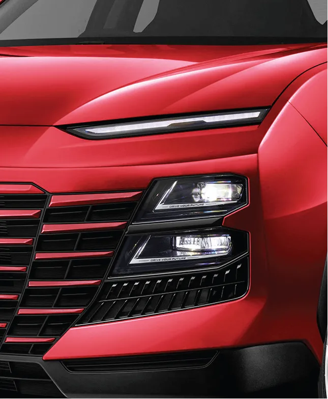 Futuristic split matrix design headlights with multiple height adjustments, crafted to radiate brilliance far ahead.